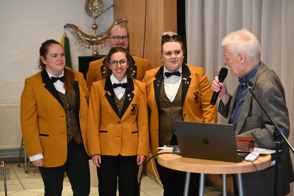 Im Rahmen der Jahreshauptversammlung am 08.03.2026 ehrte der Musikverein Schönaich auch zahlreiche aktive und fördernde Mitglieder. Für 10 Jahre fördernde Mitgliedschaft wurden Christina Fiedler, Klaus Fiedler, Ephraim Klaiber, Susanne Memmleb, Beate Rebmann, Swinta Rezmann, Katharina Schlener, David Telpl, Thomas Ulmer und Dr. Heike Langner geehrt. Seit 20 Jahren unterstützen den Verein Sandra Gandowitz, Elisabeth Grupp, Jasna Holzherr, Jutta Krämer, Sari Laukanen-Wolfer, Christina Rebmann, Bernd Schroeder und Jürgen Weiß. Bereits seit 30 Jahren leisten Natalie Baur, Christina Fuchs, Paul Keller, Sonja Marczy, Peter Rebmann, Patrick Schwarz, Cornelia Völmle, Herta Völmle und Silke Wacker ihren Beitrag. 50 Jahre Mitglied sind Ingrid Firlus, Axel Hepfer und Heinz Ulmer. Sogar schon 60 Jahre halten dem MV Schönaich Martin Gerlinger und Joachim Leippold die Treue. Und seit 70 Jahren Mitglied ist Wladimir Speigl. Er begann seine musikalische Laufbahn im Ländle in Schönaich und spielt jetzt noch mit fast 90 Jahren Bariton-Saxophon im Musikverein Jockgrim in der Pfalz.